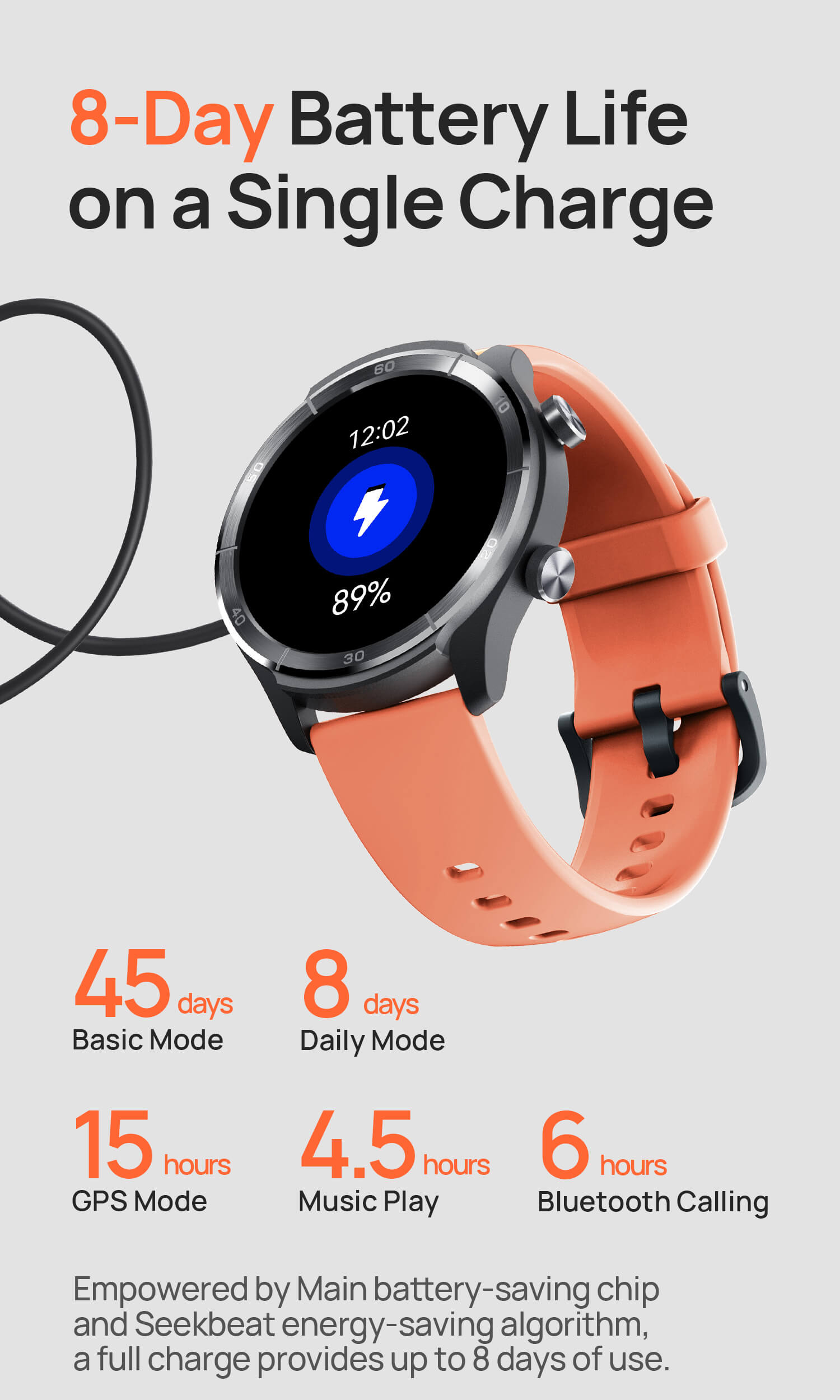 Up to 8 days in daily mode | Up to 45 days in basic mode