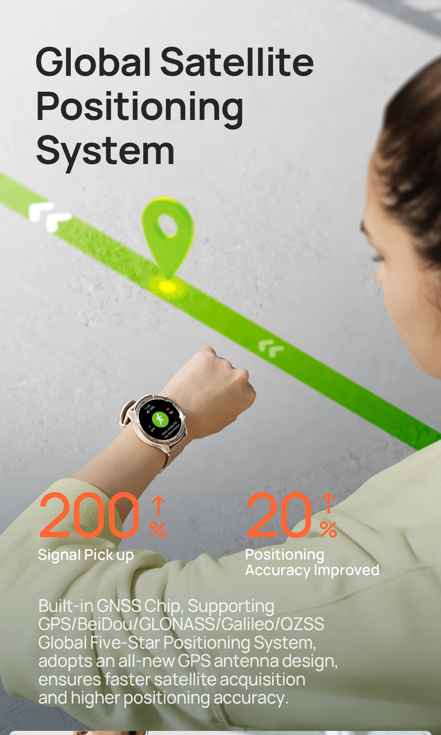 Paired with your phone's GPS for visualized workouts. 2ATM waterproof with 100+ specialized sport modes.