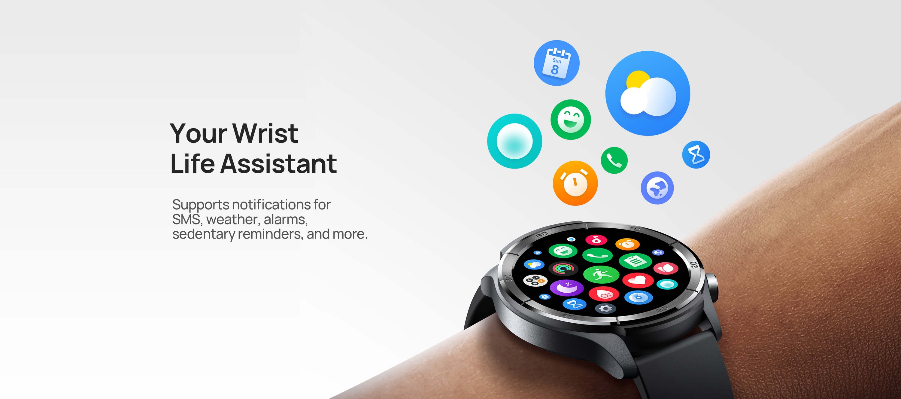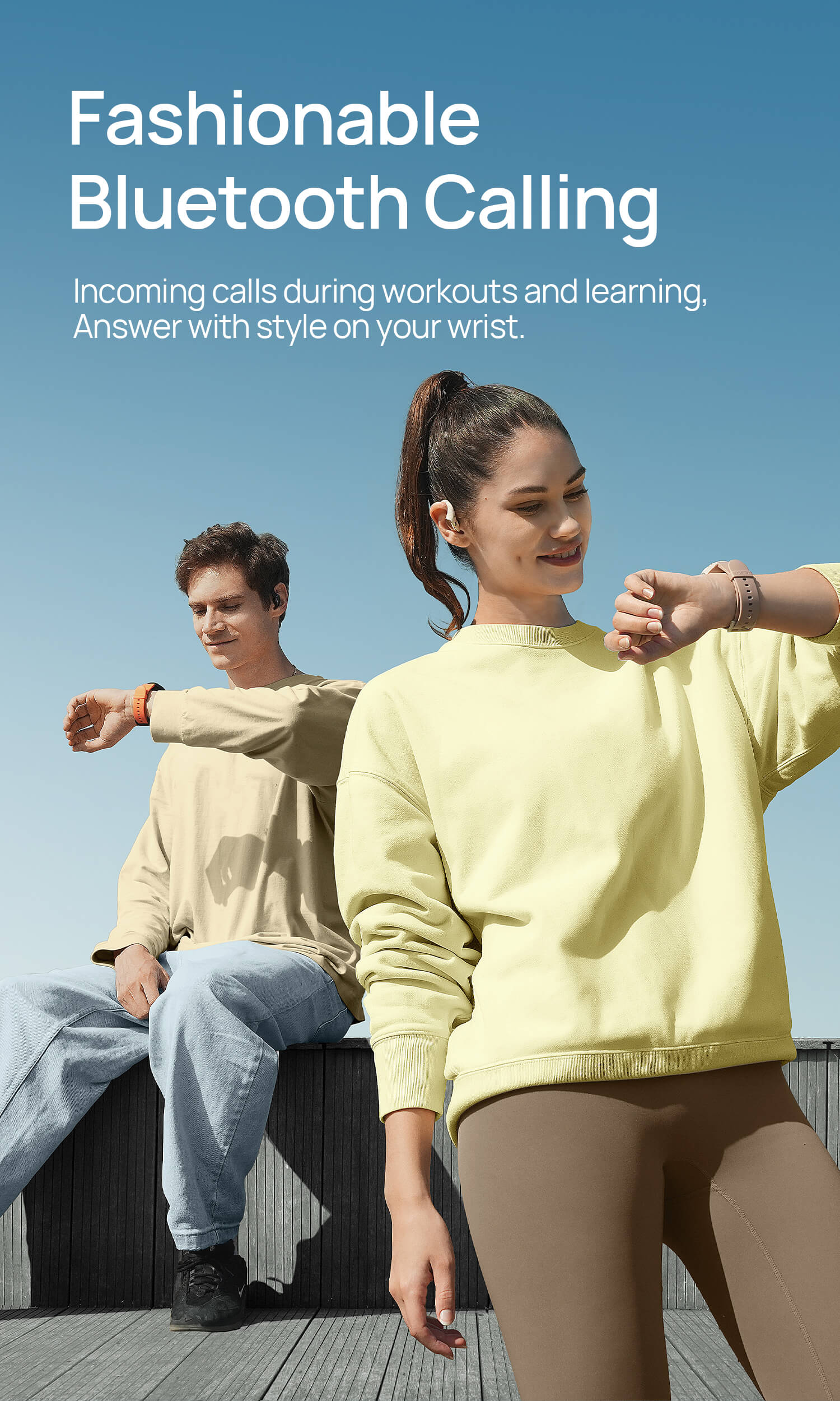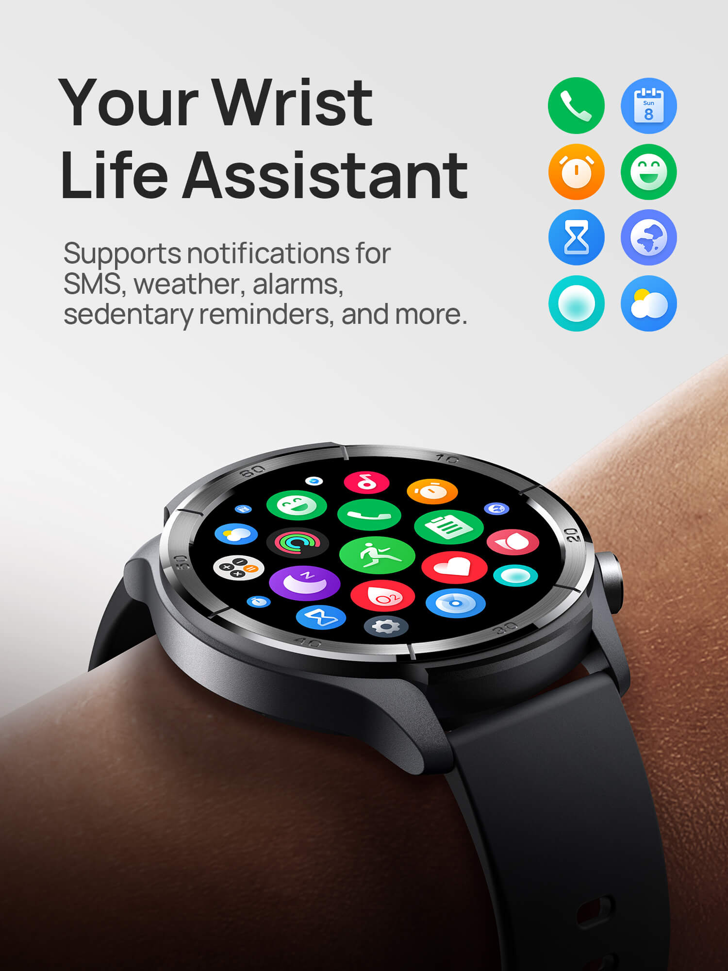 Supports BT calling, SMS, weather, alarms, and more daily reminders.