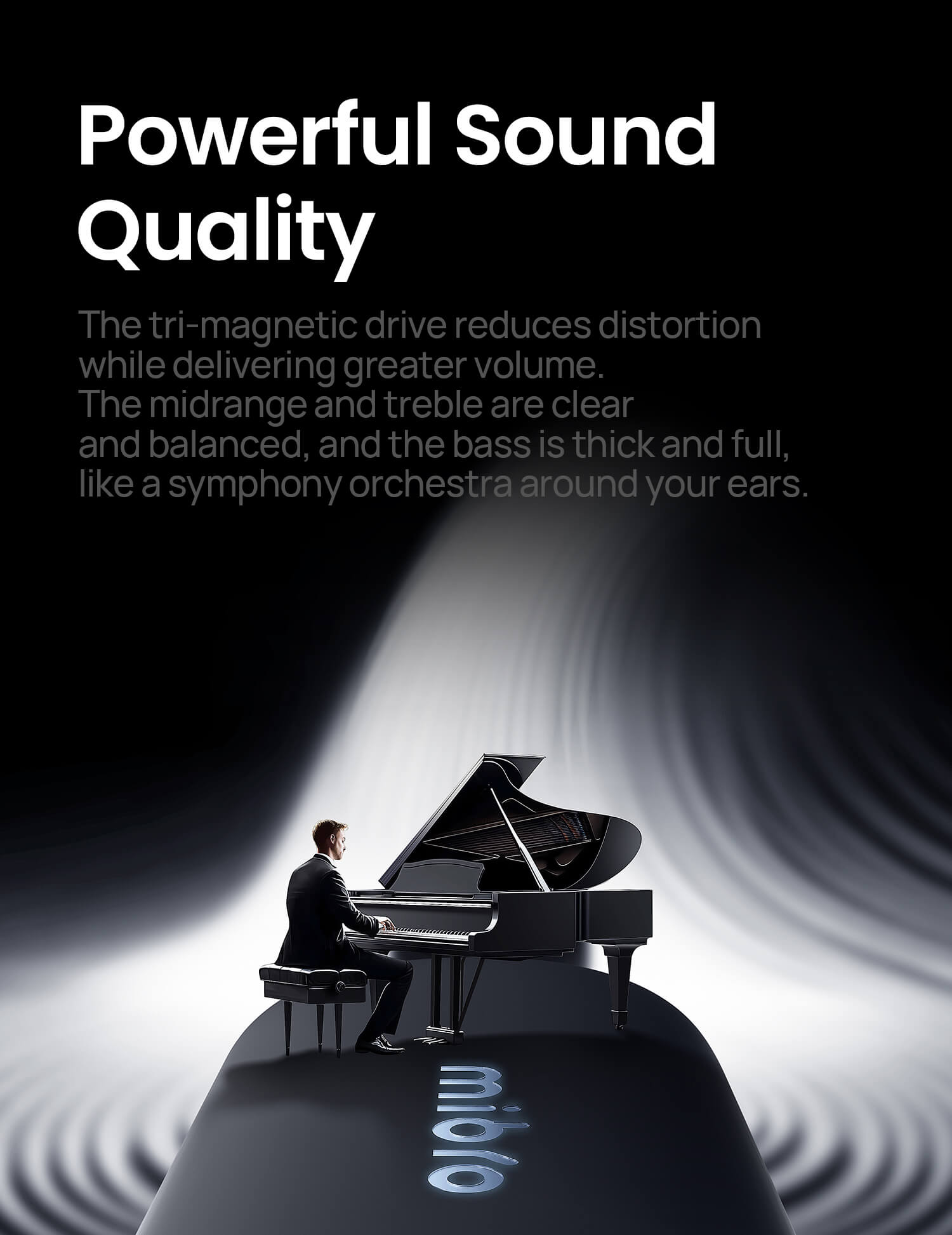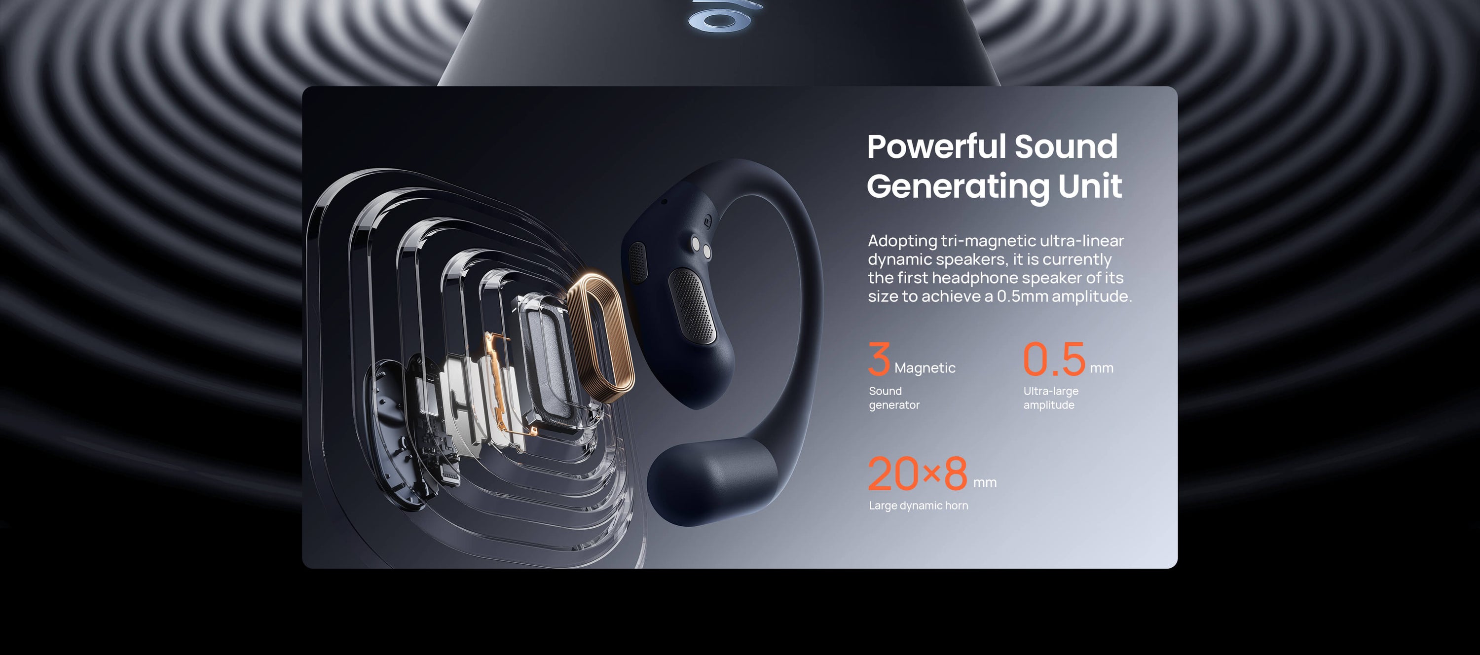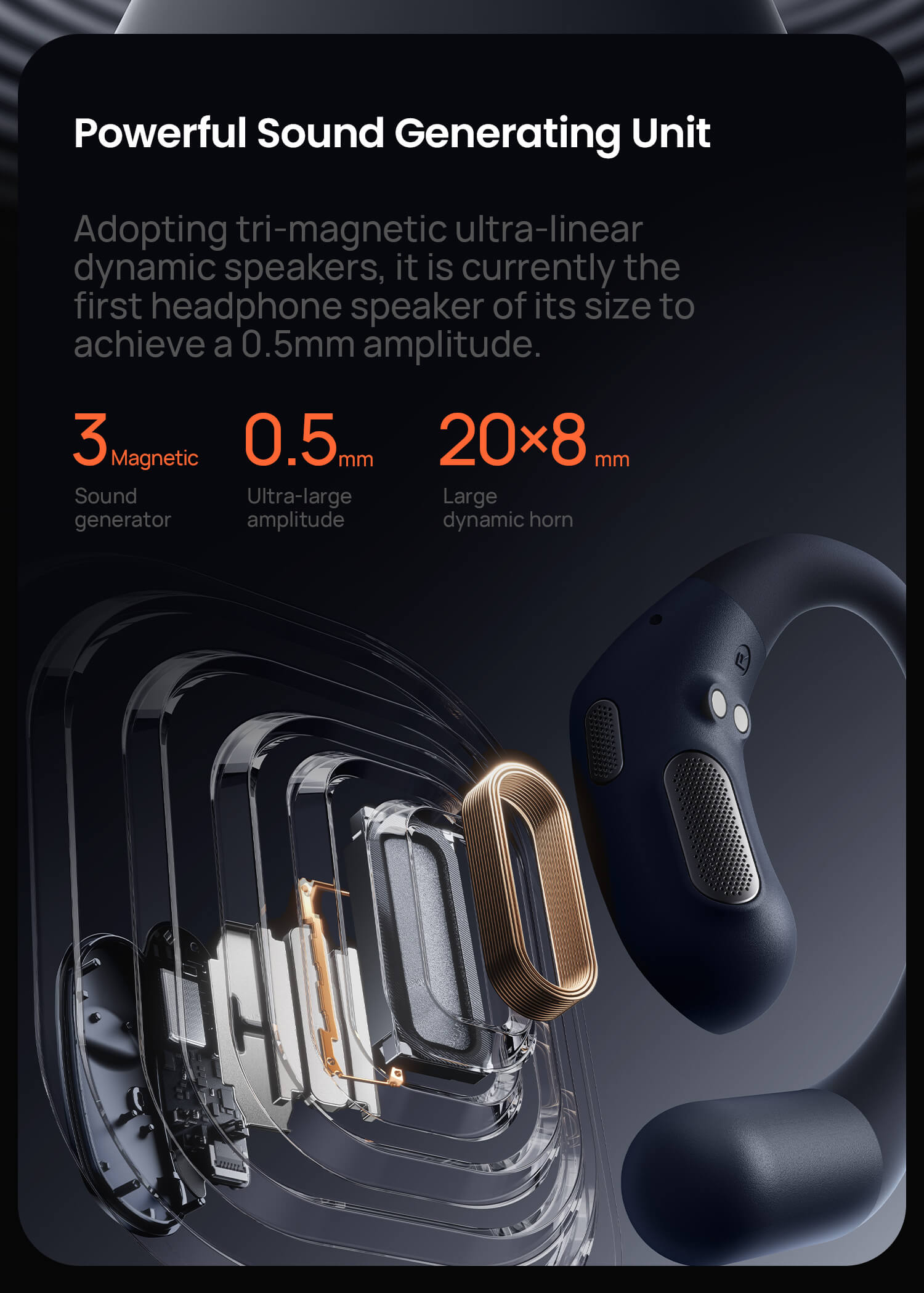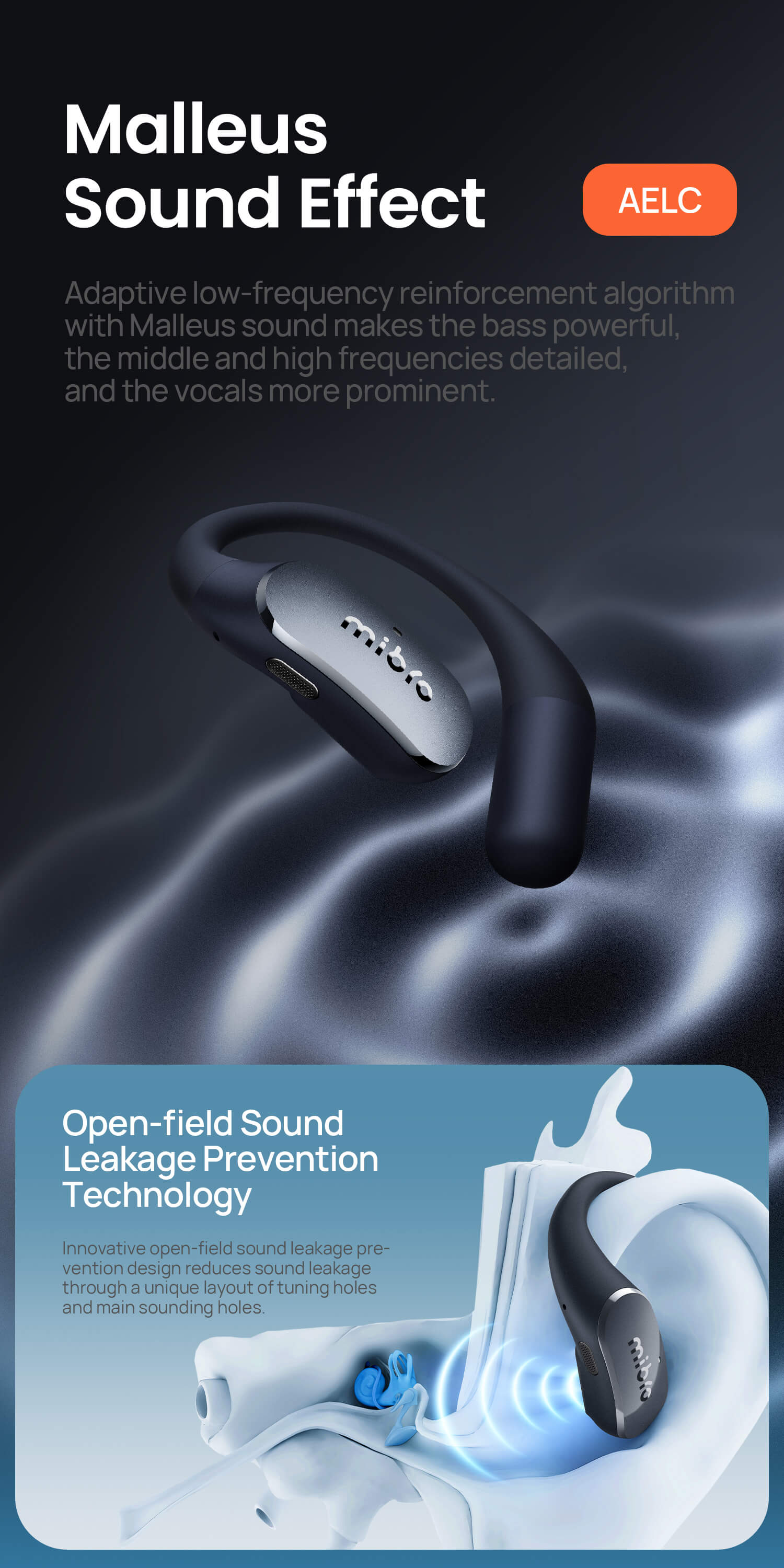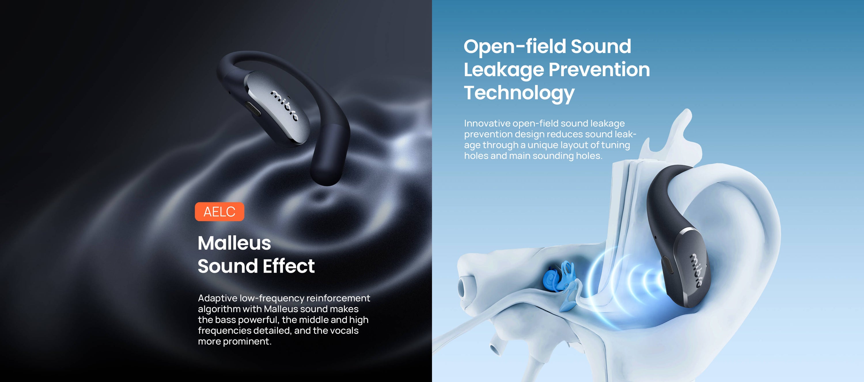 Open acoustic technology keeps you aware of surroundings. Unique sounding holes minimize sound leakage. The midrange and treble are clear and balanced, and the bass is thick and full.
