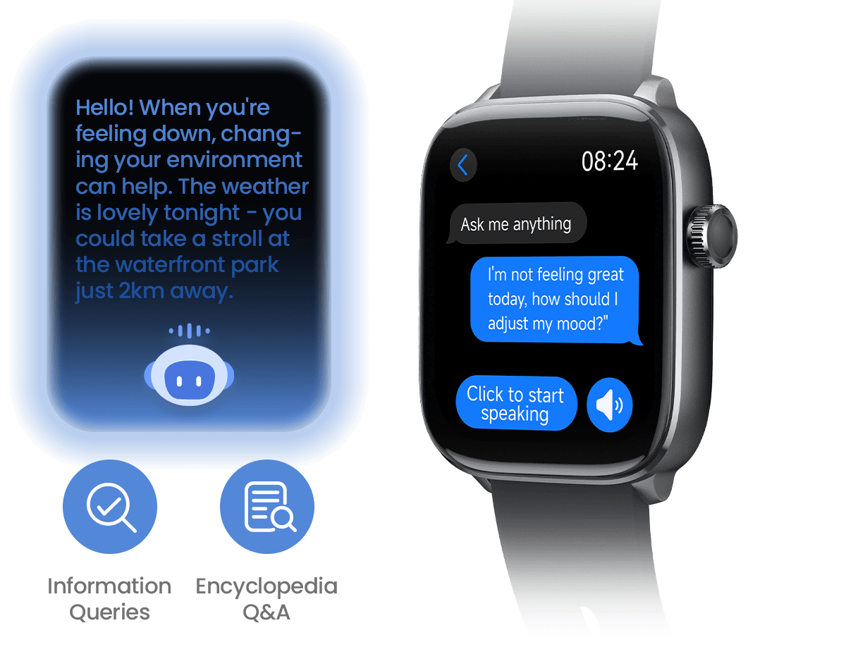 Go beyond commands. Engage in natural voice Q&A, set smart schedule reminders, and even generate personalized AI watch faces with a simple description. Your intelligent assistant is always ready.
