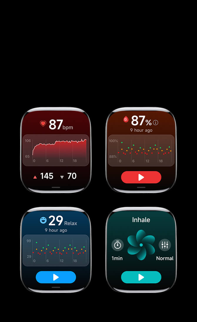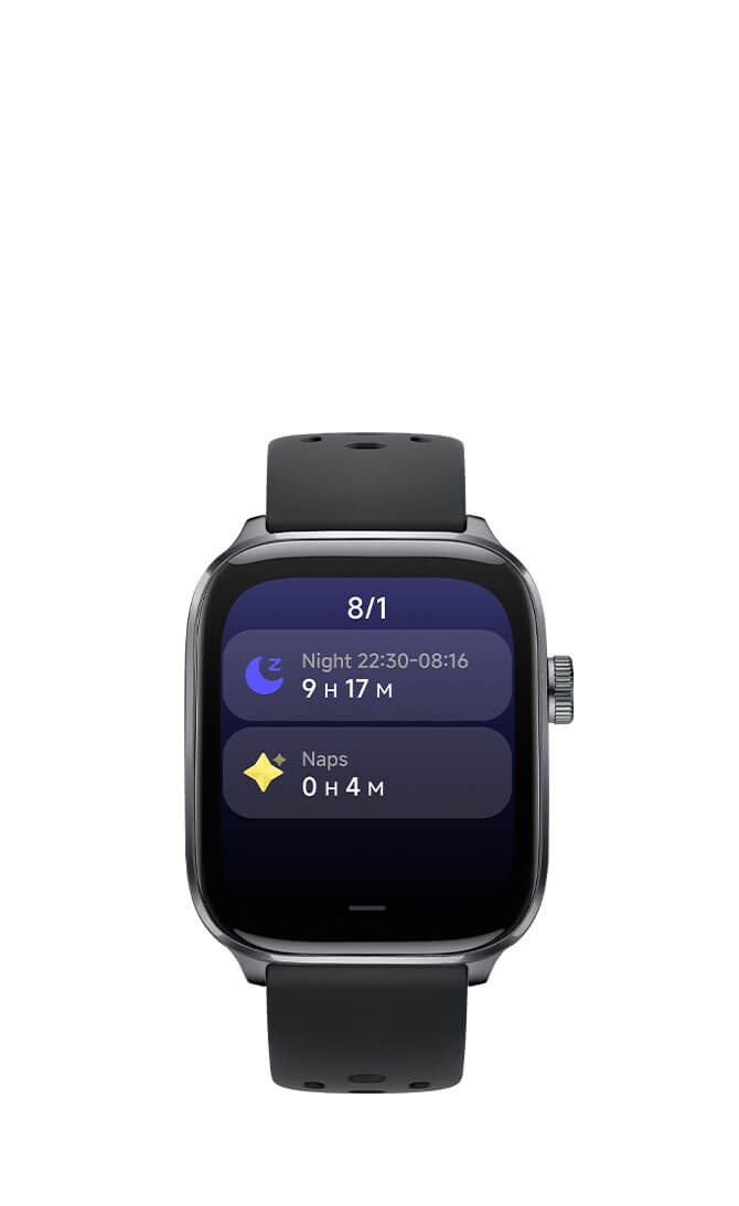 Stay on top of your well-being. Featuring a 4PD heart rate sensor, continuous blood oxygen monitoring, advanced sleep analysis (including REM), and stress tracking for a complete picture of your health.