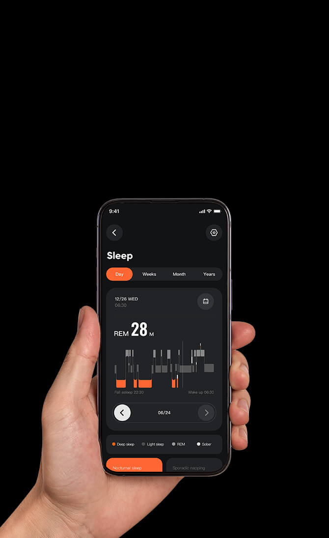 Nighttime monitoring scores your sleep quality, helping you optimize irregular sleep patterns for better rest.