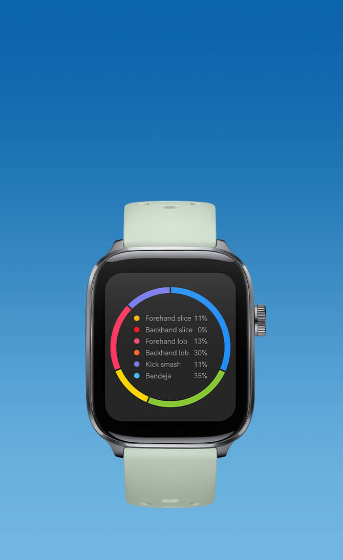 Dominate the court. Our advanced BOSCH 6-axis sensor captures every stroke with millisecond precision. Gain insights from four-stage speed analysis and a detailed performance matrix to train smarter.