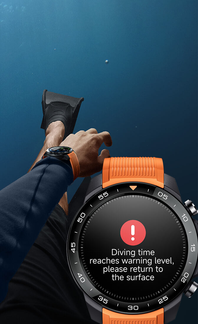 Track depth (current/max), ascent/descent speeds, dive time, and count in real-time. Set custom depth/time warnings with visual+vibration alerts. The bright AMOLED screen and 3-button controls work flawlessly underwater, even with gloves.