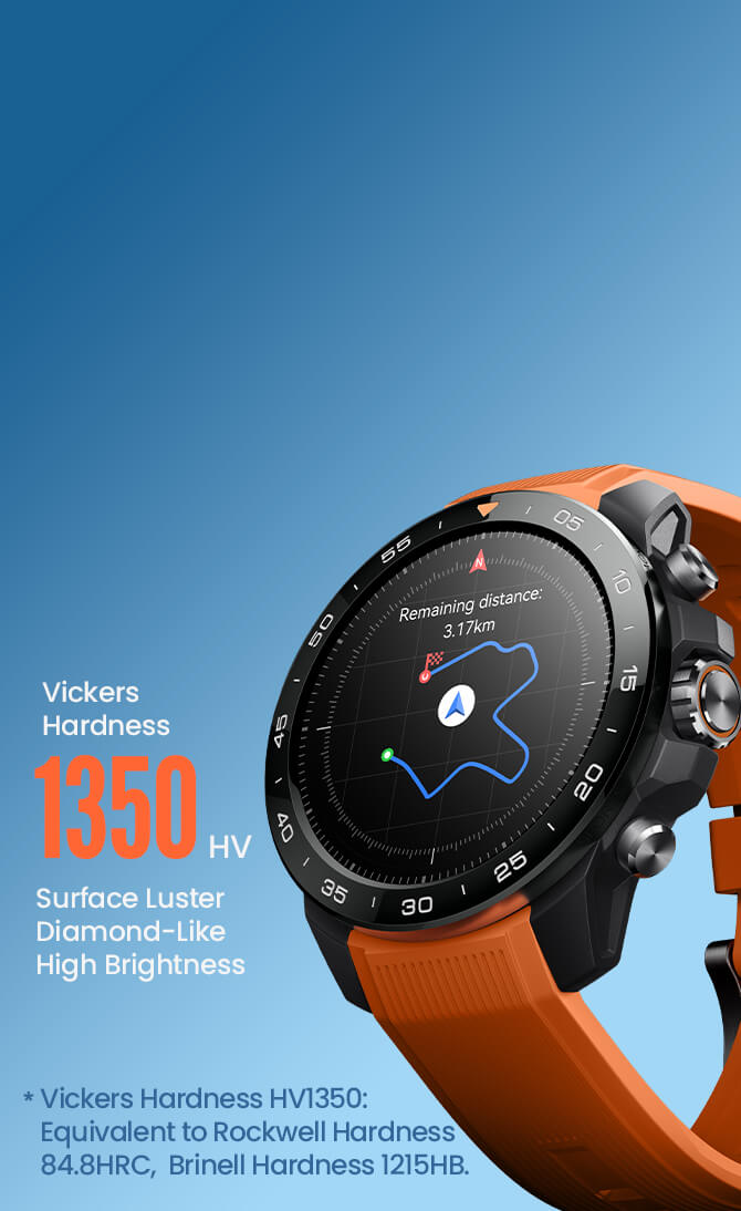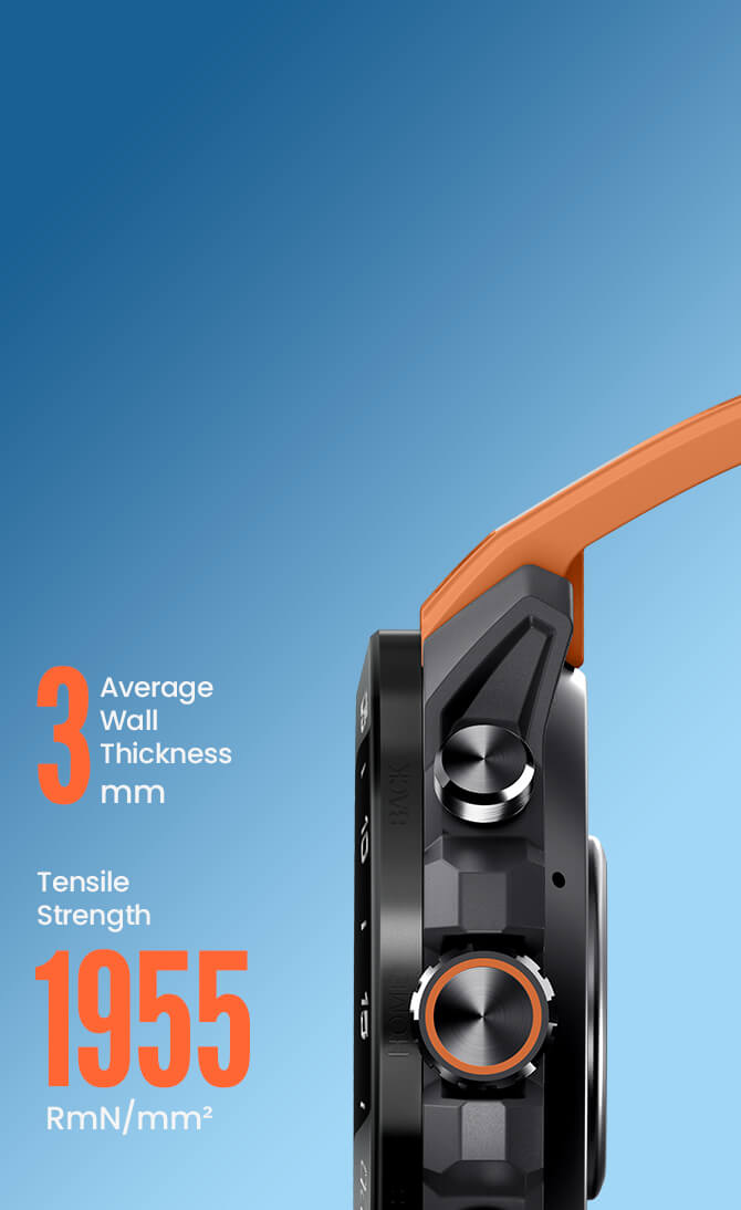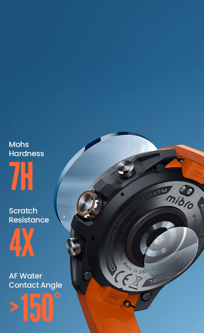 Built for extremes. Survives -30°C to 70°C temperatures, salt spray, dust, shocks, and humidity. Features a diamond-hard nano-ceramic bezel, scratch-resistant Corning GG3 glass, and a super-strong glass-fiber nylon case. Adventure without limits.