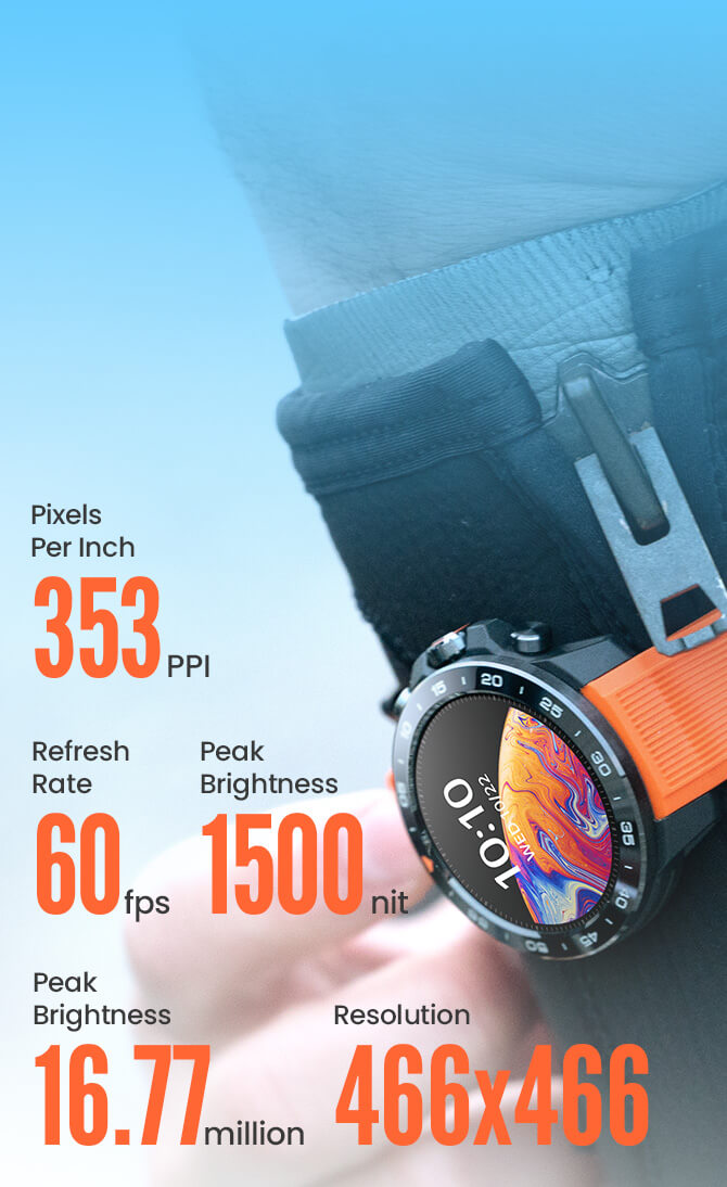 1.32"Amoled466*466,AOD,1500nits,PPI 353