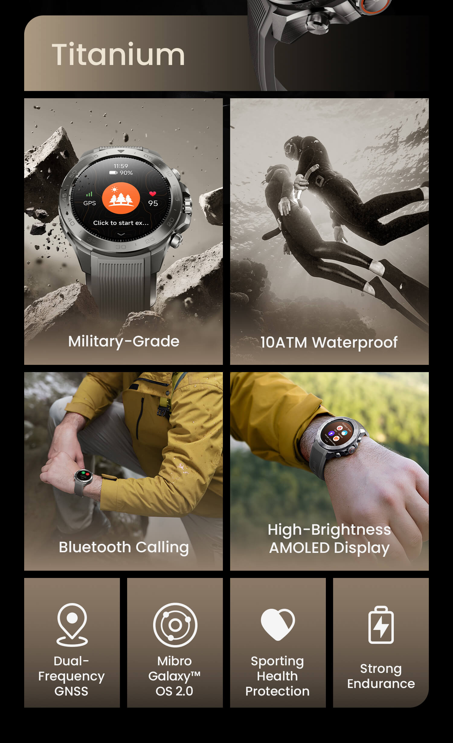 High water resistance and audio rarely go together—only a few top-tier brands have make it happen due to intense technical challenges.Now, Mibro breaks the barrier. With breakthrough waterproof technology, we deliver 10ATM (100m) resistance while keeping Bluetooth calling clear—even in extreme conditions.