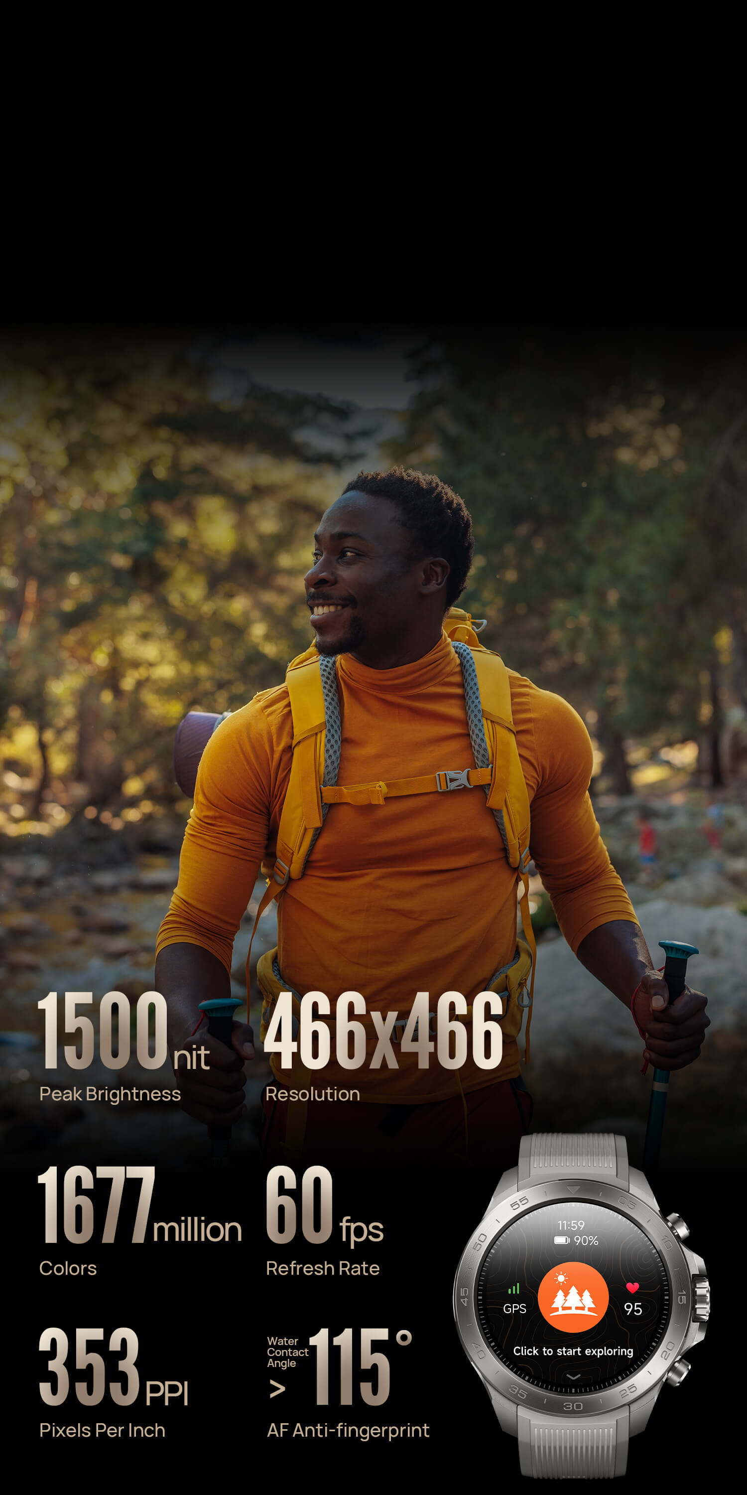 Visual Interface: Altitude, mileage, compass, waypoints, heart rate, and other key information at a glance;
