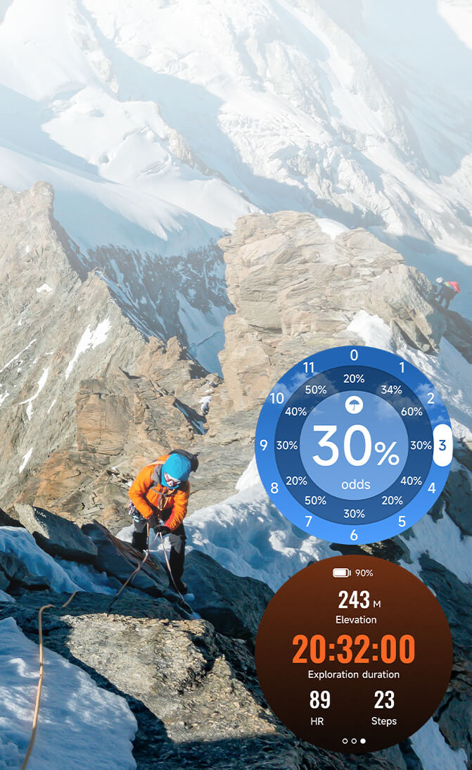 Intelligent Warning System: Monitors pressure changes in real-time to alert you of bad weather ahead. Blood oxygen monitoring keeps you safe at high altitudes.