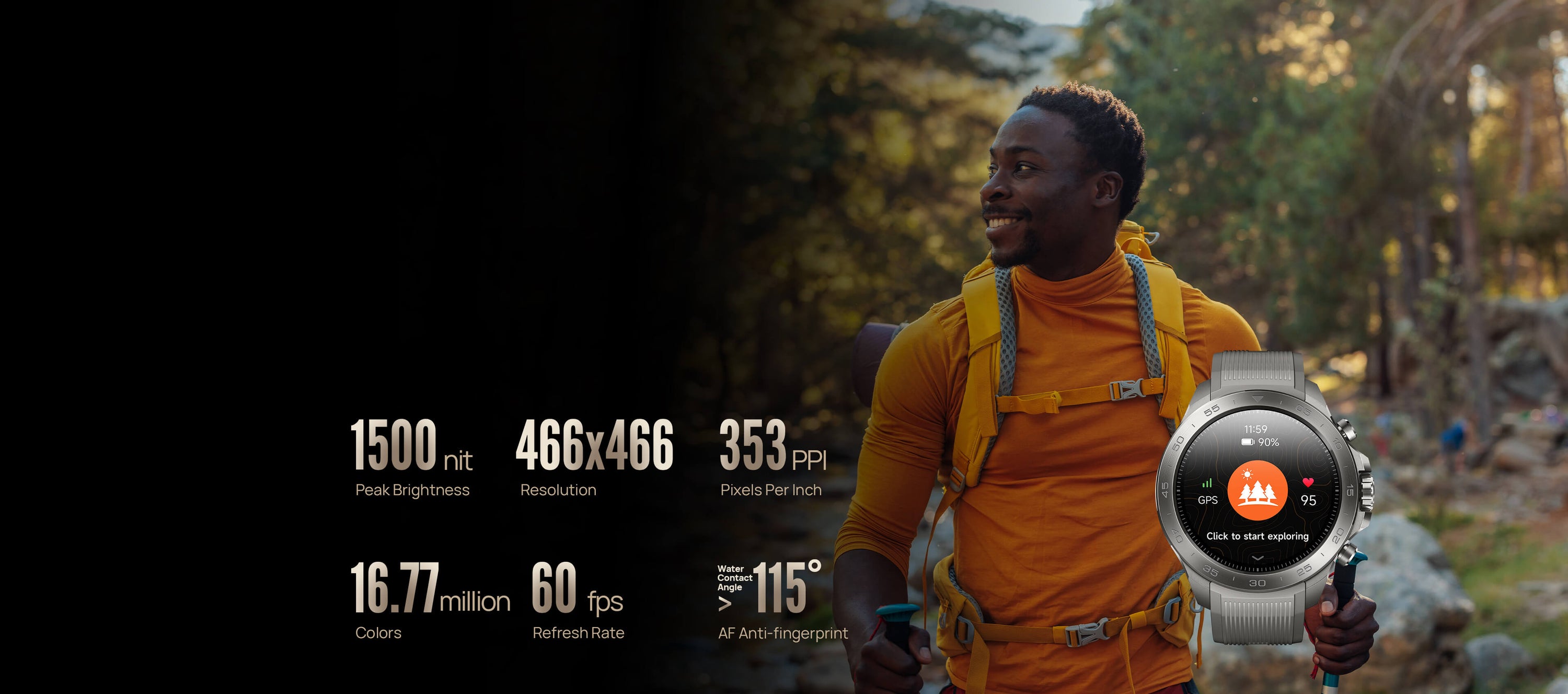 1.32" Amoled 466*466, AOD,1500nits,PPI 353