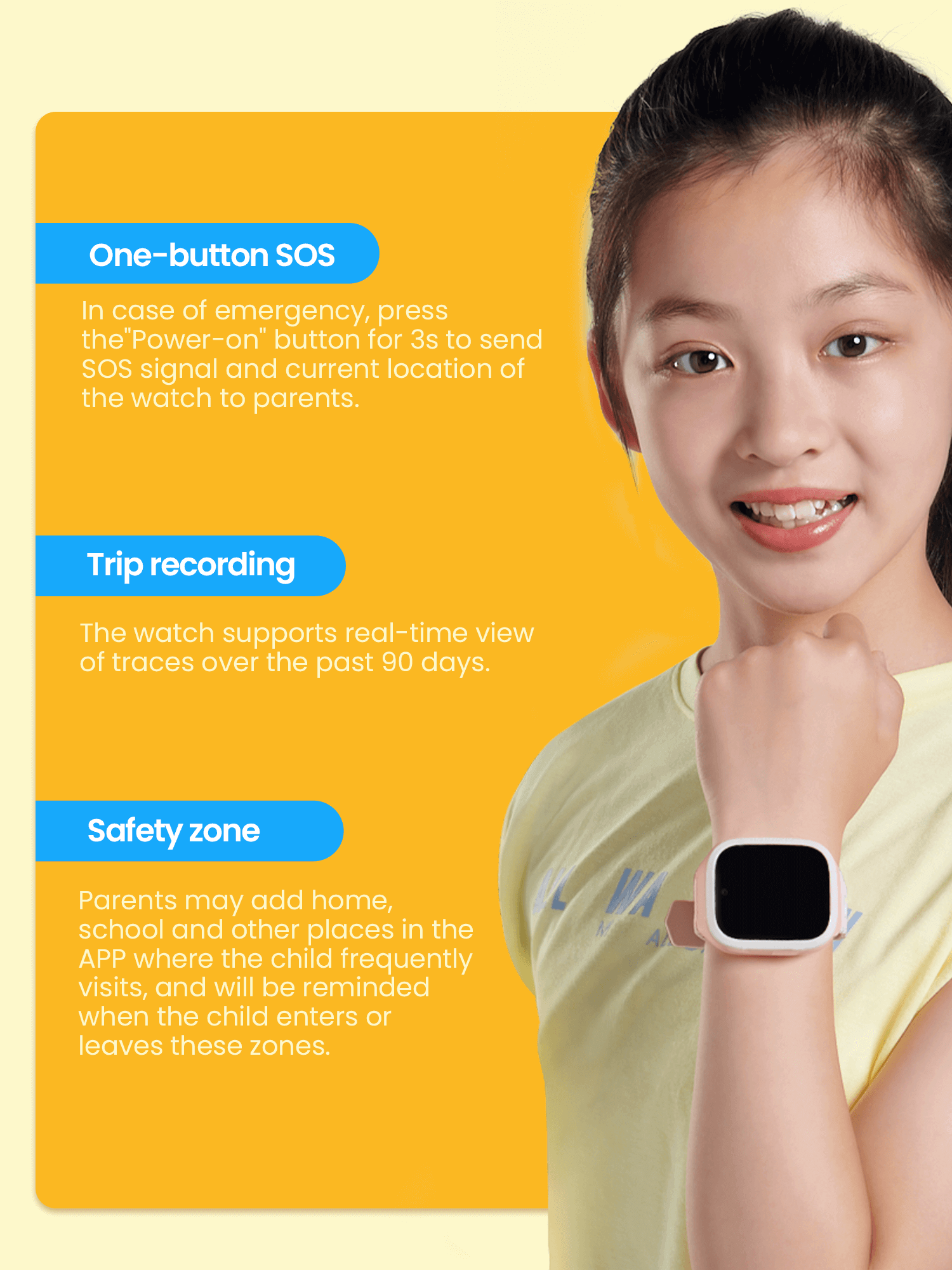 Safe Areas & 3-Month Tracking. Monitor your child's location with 7 advanced positioning modes (GPS, Beidou, Wi-Fi, and more) for fast and accurate tracking via 4G.