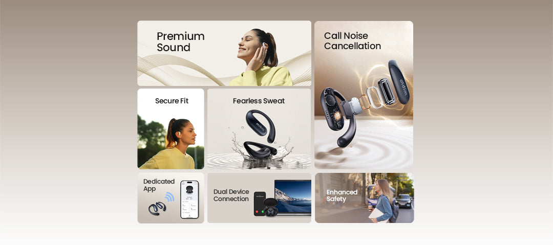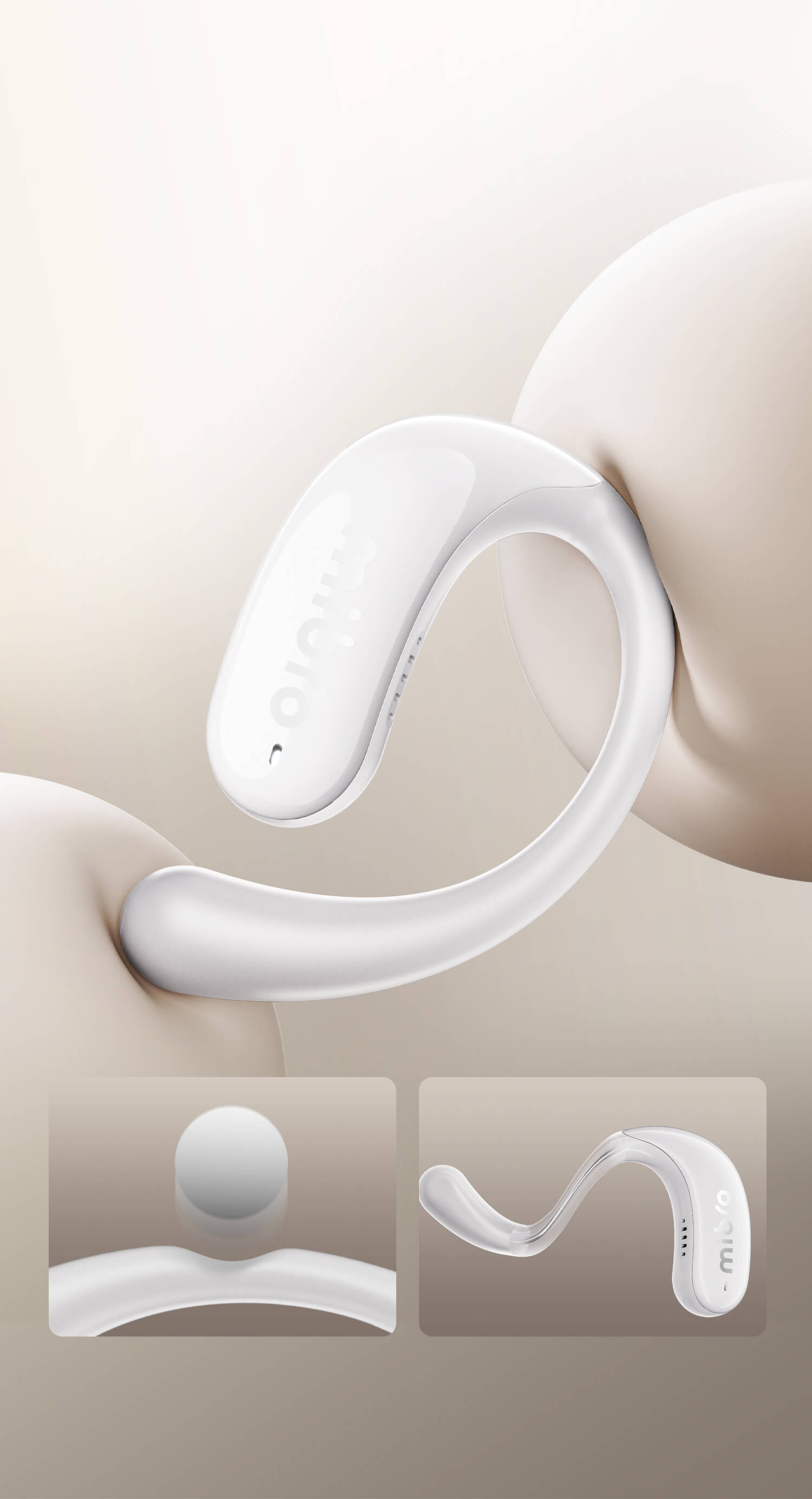 Non-in-ear structure with Mobius curve support and TPEE ear hooks ensures secure fit during intense workouts while maintaining environmental awareness. Ceramic-coated surface resists sweat and slippage.