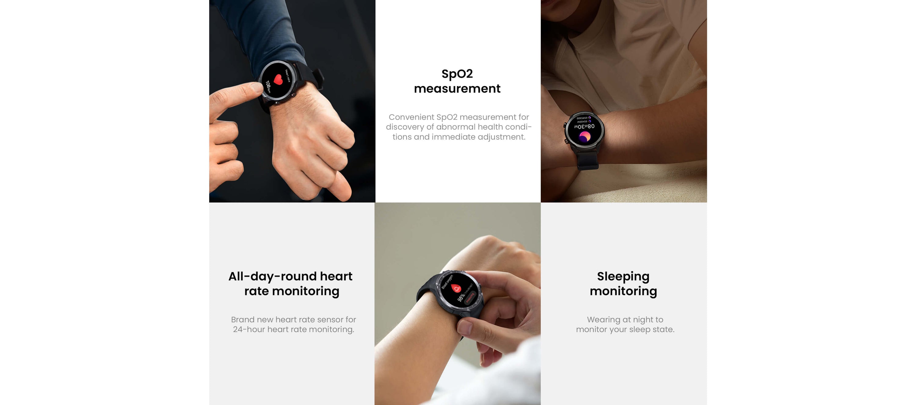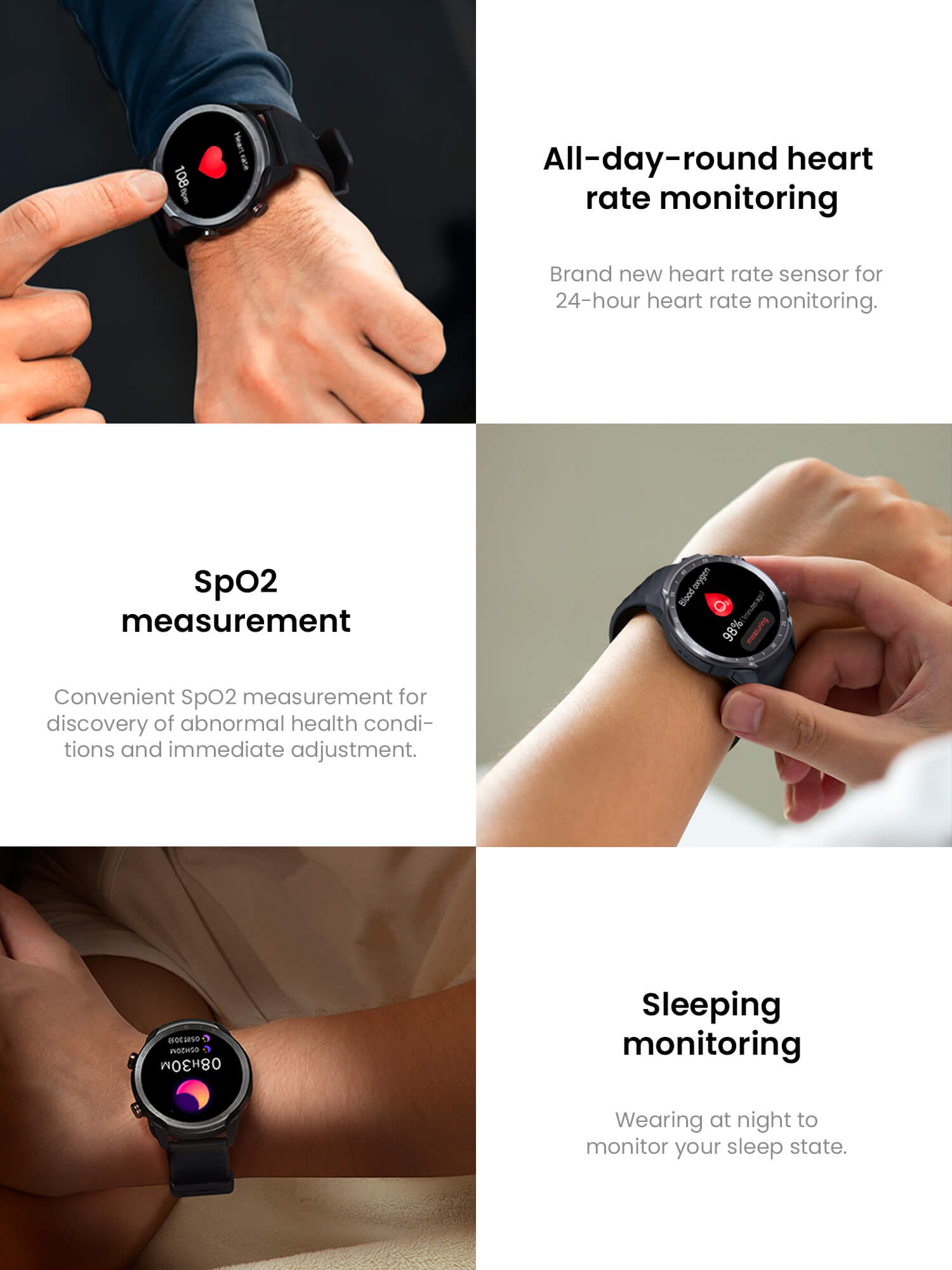 24/7 updated 4PD heart rate, SpO2, sleep,stress tracking,and breathing training.