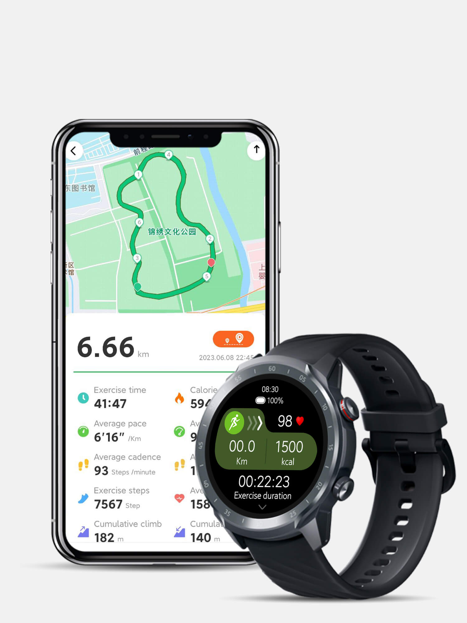 Paired with your phone's GPS for visualized workouts. 2ATM waterproof with 70 specialized sport modes.